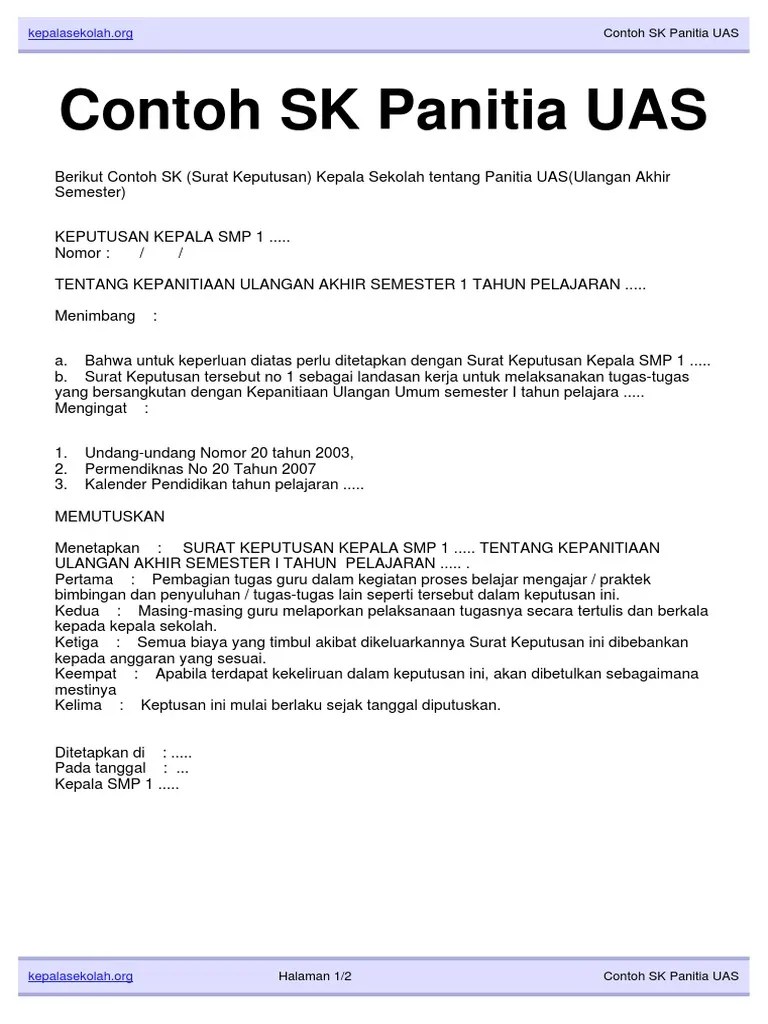 Umar said sh mm 1. Sk panitia untuk kegiatan uas. Selengkapnya berikut format sk ujian sekolah untuk jenjang sd smp sma smk tahun pelajaran 2021/2022 bentuk doc word pdf semoga berguna. Setiap panitia yang diberikan amanah untuk mengerjakan tugas dalam kegiatan pas, memerlukan sk. Berikut contoh sk (surat keputusan) kepala sekolah tentang panitia uas(ulangan akhir semester).