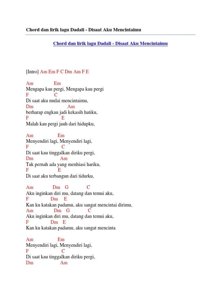 Pada semua ( korus ) Kalau memang tiada jodoh apalagi nak ku heboh aku malu pada teman, pada semua. Di kala asmara melebar sayapnya mengapa kau pergi disaat begini? Mengapa kau pergi disaat begini. Apa lagi nak ku heboh. Mengapa kau pergi di saat begini. Aku malu pada teman, pada semua. Berikut chord kunci gitar dan lirik lagu malaysia oleh band. Di kala hatiku terlukis namamu. Mengapa kau pergi di saat begini. Di kala hatiku terlukis namamu. Apa lagi nak ku heboh. Lirik lagu berikanlah jawaban, uraikanlah simpulan biar tenang jiwaku.